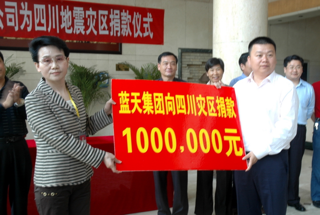 藍天集團為汶川地震災區捐款100萬元