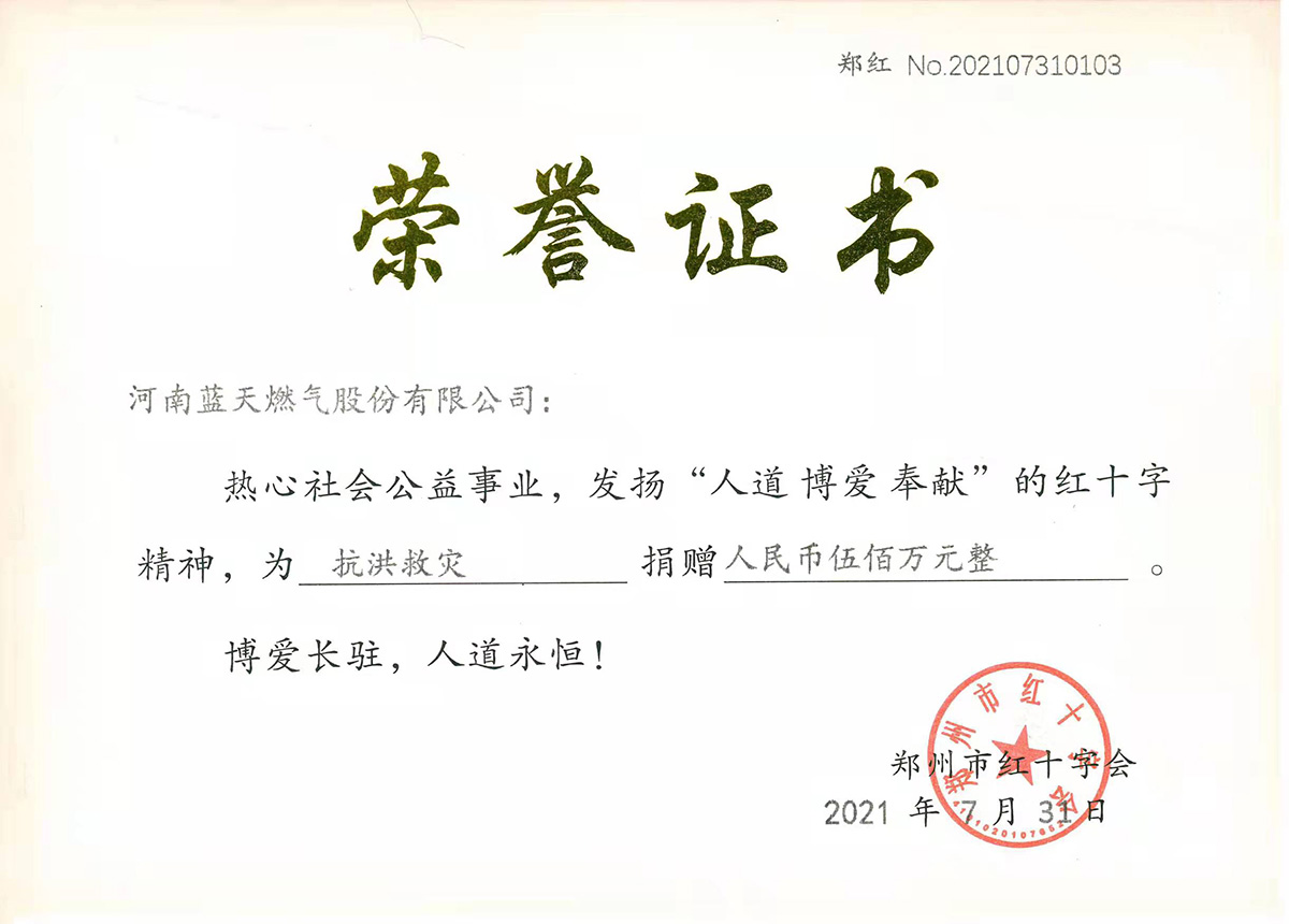 藍天集團捐款500萬元支援河南抗洪